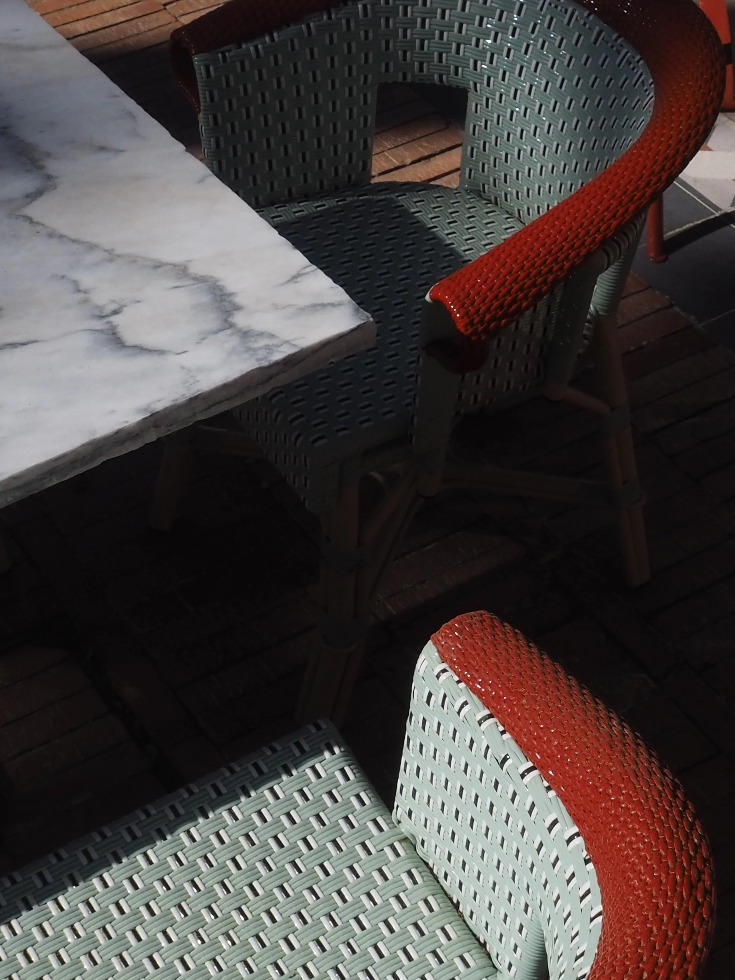 Pause sucrée sous les pins de Pyla-sur-Mer. Sur la terrasse de l’Ha(a)ïtza, on s’installe pour savourer l’une des pâtisseries fines du chef, dans une ambiance feutrée et discrète où chaque détail compte — même le sol, signature du lieu du designer Starck.